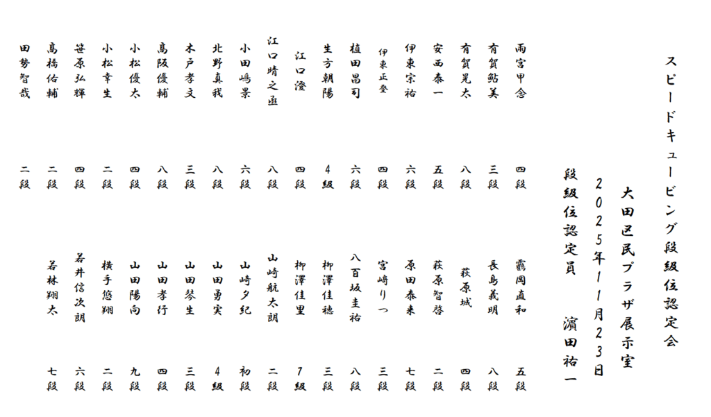 東京記録会2025年秋(一般社団法人スピードキュービングジャパン公認大会)