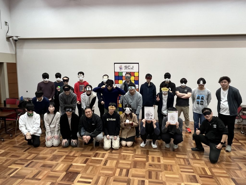 - みんなで目隠しをして